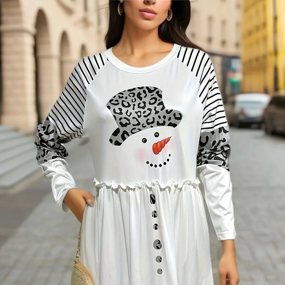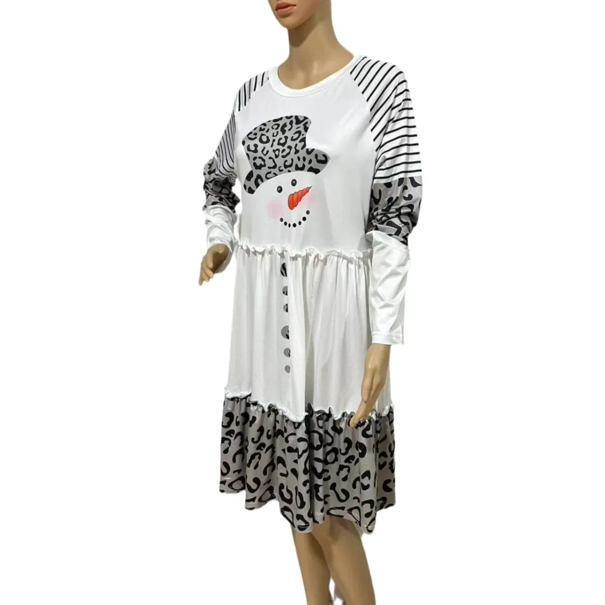 Das Damen Weihnachtskleid mit Langarm, Streifen-Design und Leopardenmuster im Midi-Stil ist ein origineller Blickfang für die Advents- und Winterzeit. Ob Weihnachtsfeier, Familientreffen oder geselliges Beisammensein – dieses Kleid kombiniert festliche Stimmung mit einem auffälligen Design.