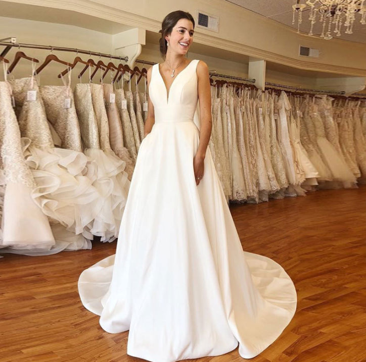 Weißes Brautkleid Mit V Ausschnitt Für Damen | Maxi