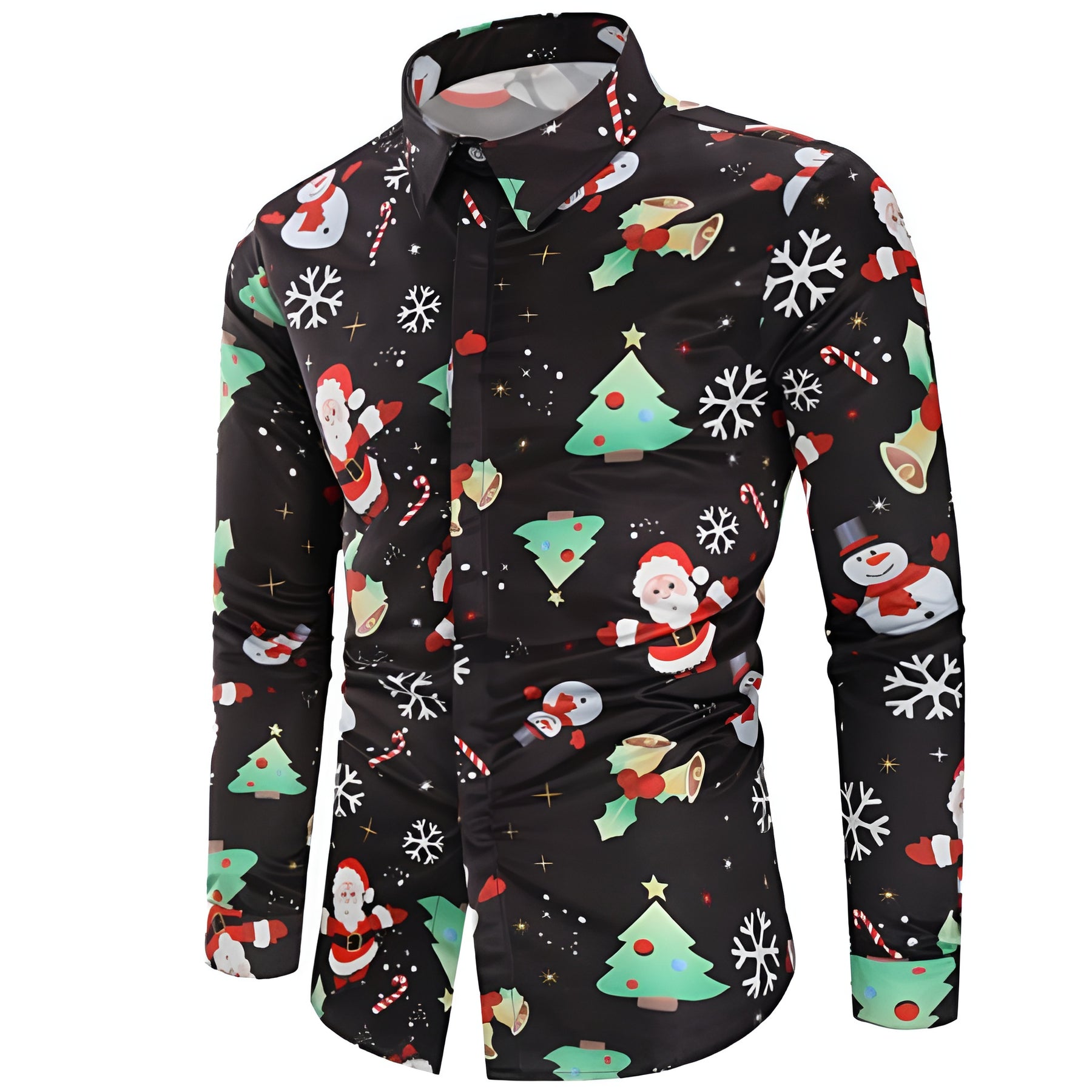 Weihnachtshemd mit langen Ärmeln für Herren | Knopf Daunen
