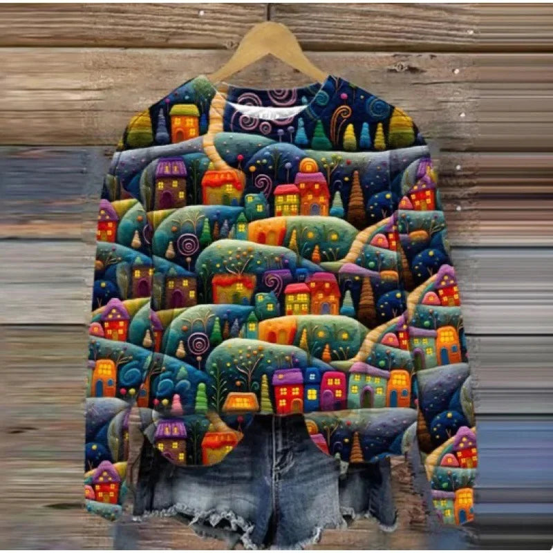 Dieser Weihnachtspullover für Damen mit Rundhalsausschnitt und langen Ärmeln kombiniert lässiges Design mit einem fröhlichen, entspannten Look. Ideal für die Weihnachtszeit, passt er zu vielen Outfits – von Familienfeiern bis hin zu Stunden zu Hause.
